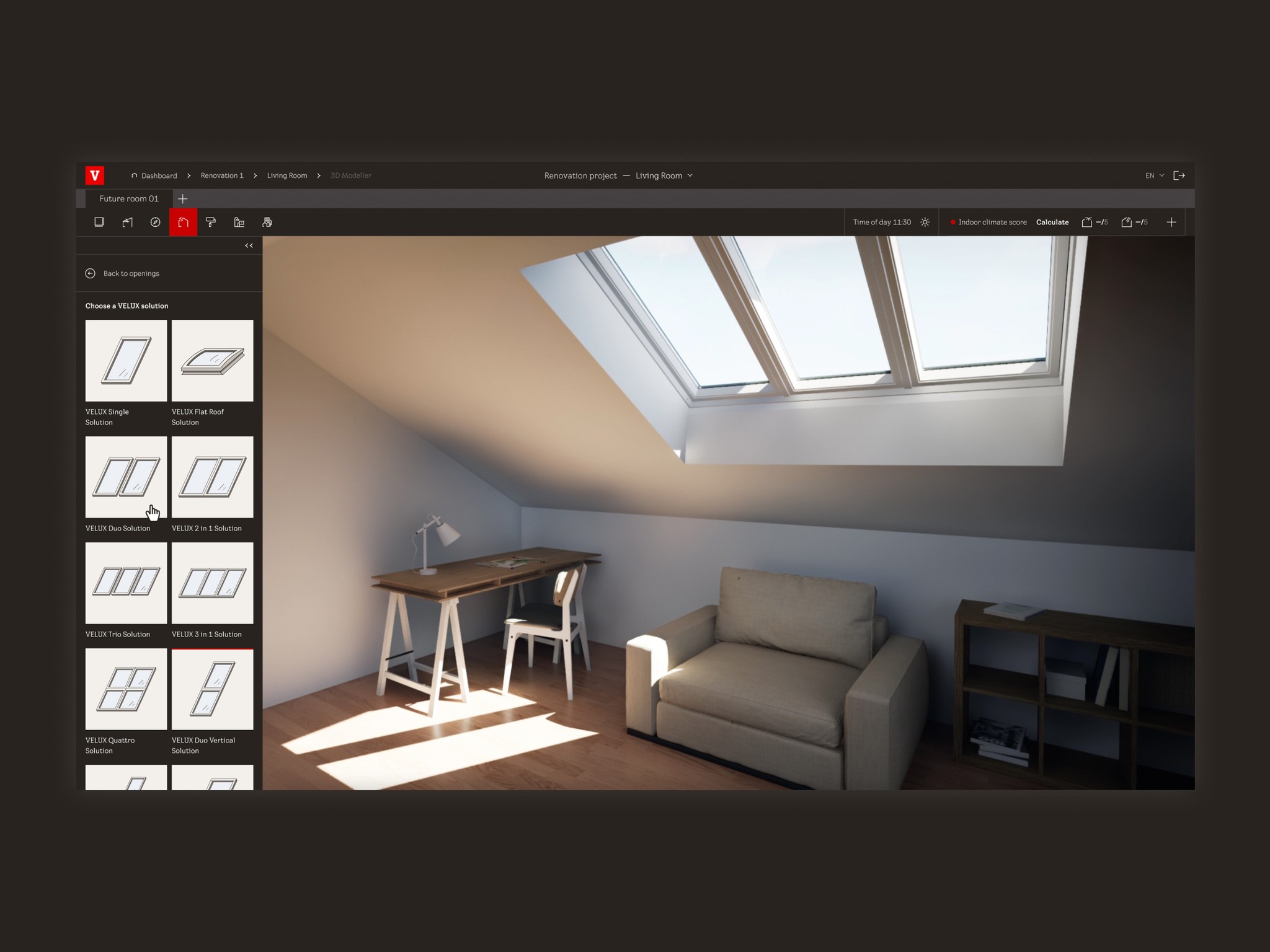 Using Unreal Engine, the VELUX Design Studio provides advanced visual capabilities for the design advisors, allowing them to visualize different potential windows setups for their clients. The tool makes explaining the effects of more daylight and improved ventilation, as well as presenting the aesthetics of the future home upgrade incredibly easy.